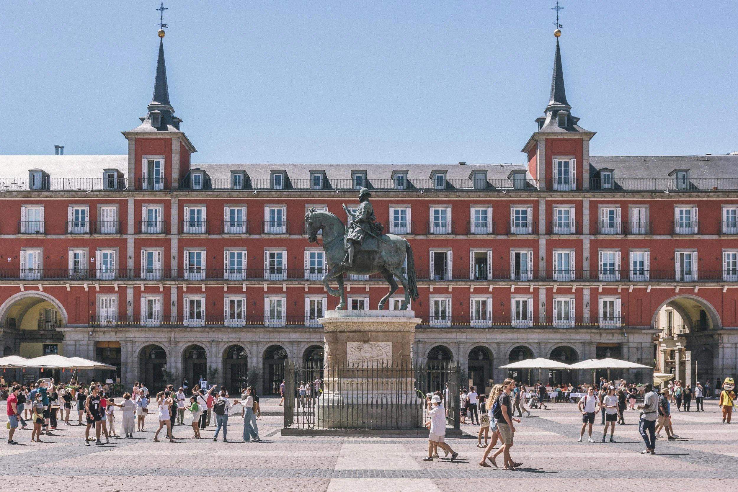 El Madrid de los Austrias: Un paseo por la Plaza Mayor y la Puerta del Sol, conectando con la majestuosidad del Palacio Real y la Catedral de la Almudena, símbolos del poder histórico de la corona española.